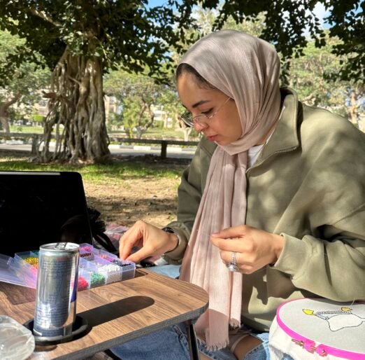 Her artistic journey includes attending a ceramics workshop with artist Reem Darwish and a punch needle workshop with artist Yoko, which enriched her understanding of materials, texture, and craftsmanship.